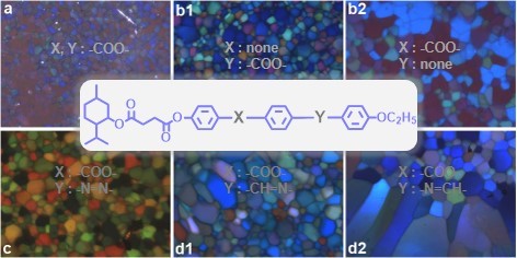 Luo, C. C. Sun, S. L. Wang, Y. S. Meng, F. B. Hu, J. S. Jia, Y. G. The effect of various functional groups on mesophase behavior and optical property of blue phase liquid crystal compounds based on (-) menthol