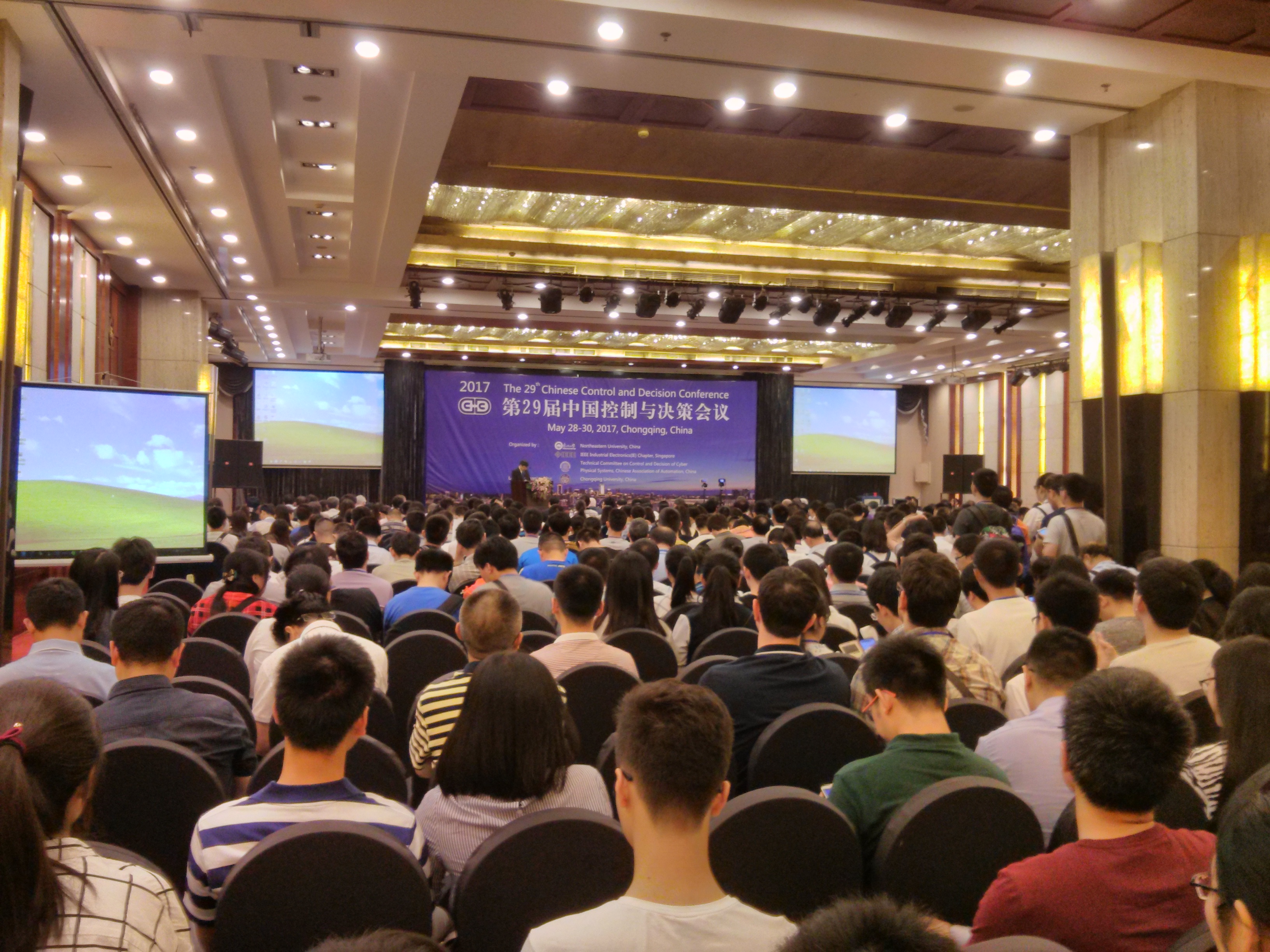 第29届中国控制与决策会议于2017年5月28日至30日在重庆召开。图为大会会场,开幕式前的场景。