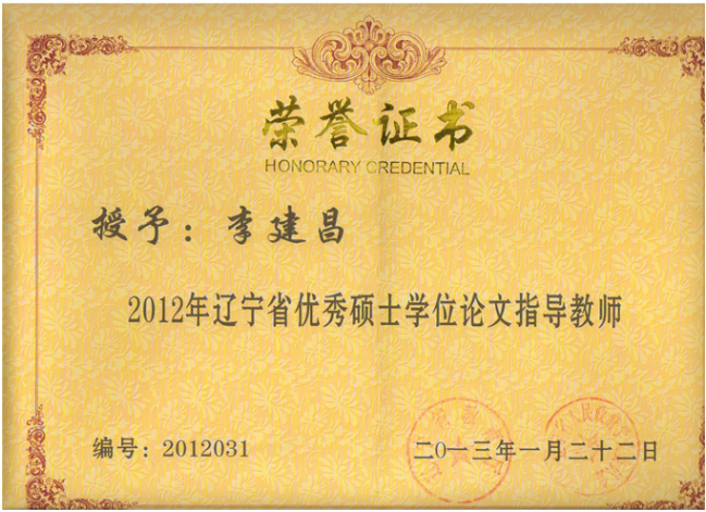 Pre One:•李建昌老师2009年入选“辽宁省百千万人才工程”千人层