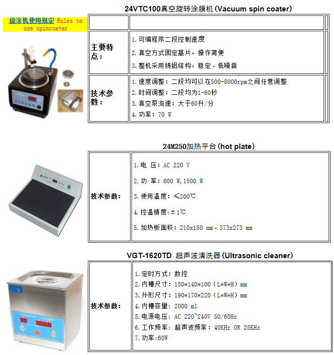 本组现有匀胶机、 恒温水浴锅、恒温磁力搅拌器、电化学工作站、精密电子天平、超声波清洗机等仪器设备及实验所需的相关仪器和材料。