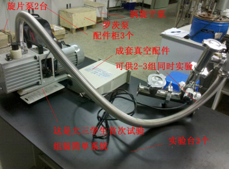 本所有真空工程与技术专业学生教学科研训练所需的相关装置与系统,以下为大三学生简单初步真空系统设计组装训练过程部分照片,由邵思佳等同学所拍摄。