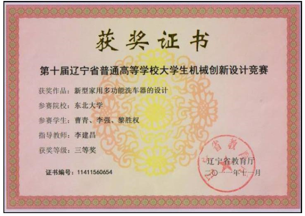 本组预研同学获第十届辽宁省大学生机械创新设计大赛二、三等奖