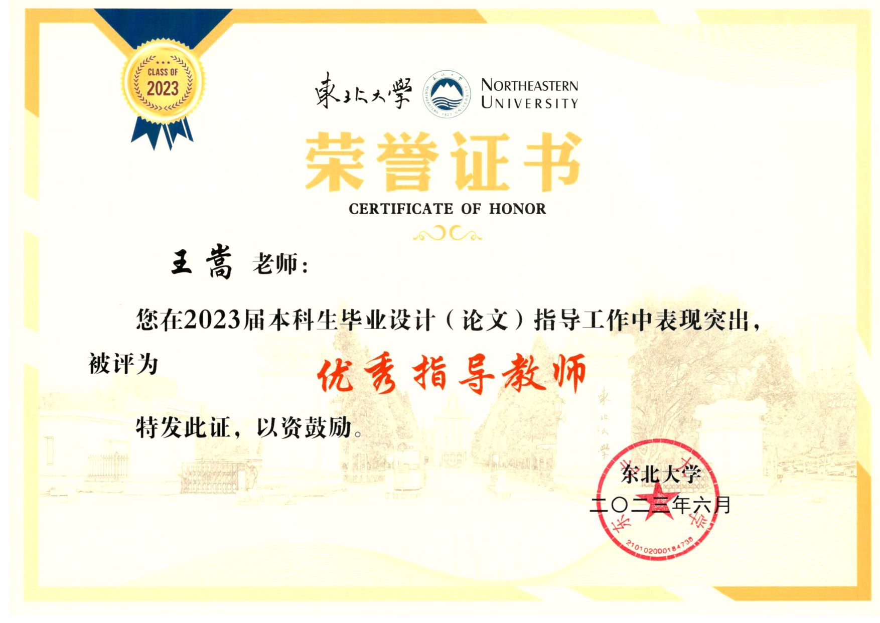 2023年本科毕业论文优秀指导教师