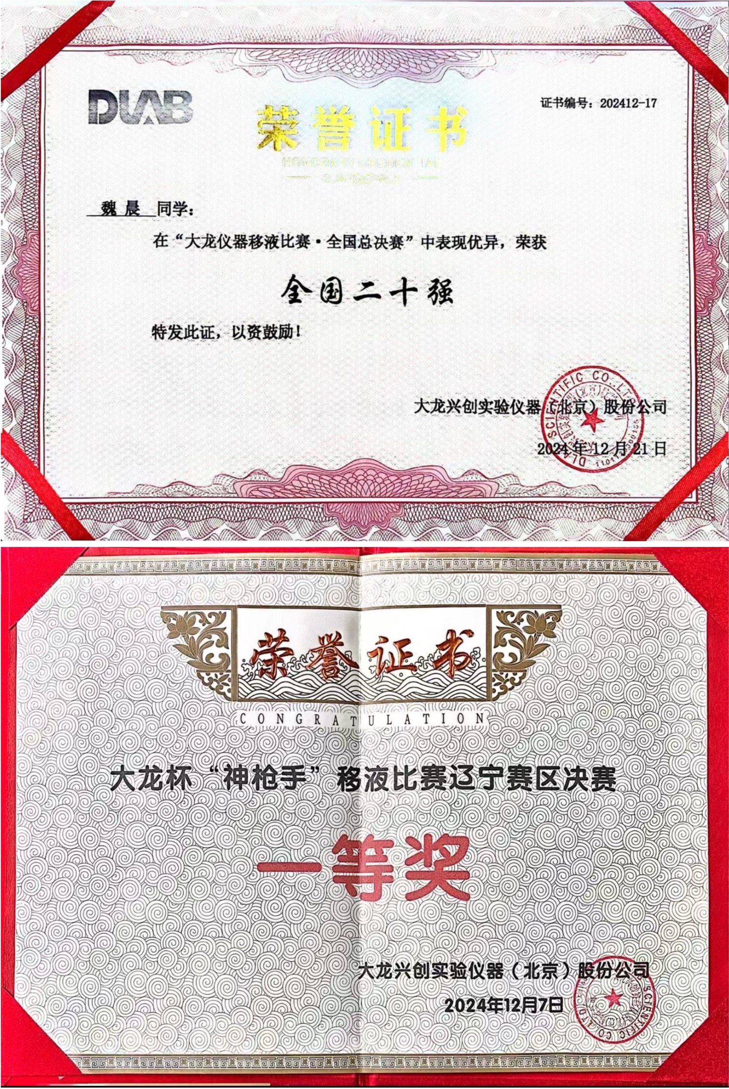 祝贺魏晨获得辽宁赛区一等奖,全国二十强。