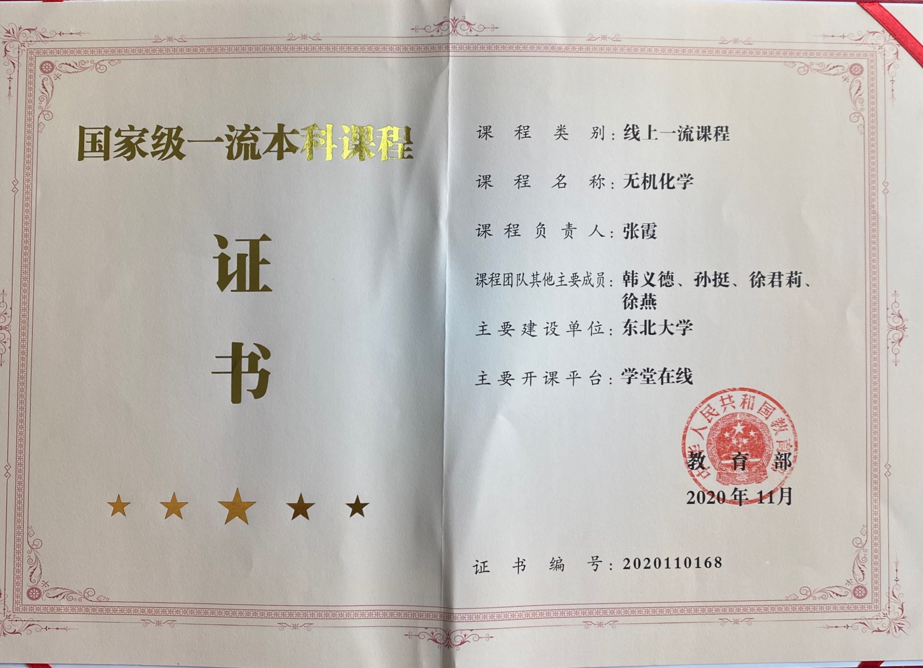 • Academic Titles:东北大学本科教学指导委员会副主任
